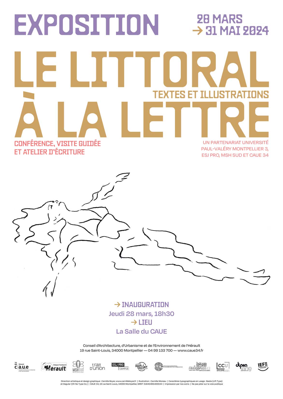 L’exposition “Le littoral à la lettre” rassemble des textes et illustrations sur les représentations subjectives du littoral. Elle fait suite à l’exposition “Empreintes humaines au fil du rivage”. Ces deux expositions ont été conçues dans le cadre du projet de recherche “Chantier Littoral” porté par Stéphanie BOST de la Maison des Sciences de l’Homme SUD (MSH Sud), Unité d ‘Appui et de Recherche (UAR 2035), qui met en réseau une cinquantaine d’acteurs régionaux (associations, collectivités, universitaires…) ayant pour sujet d’étude commun le littoral.