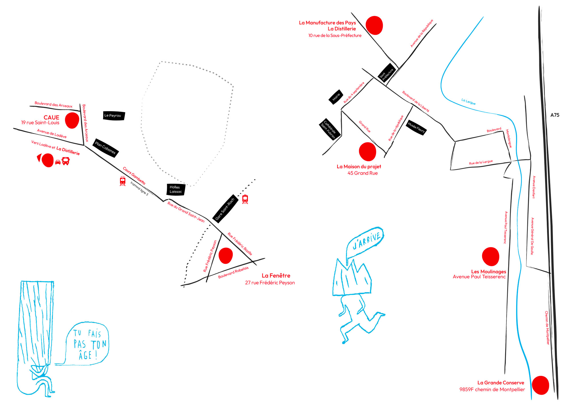 >> CAUE de l’Hérault (19 rue Saint Louis) du lundi au vendredi, de 10 h à 12 h 30 et de 14 h à 17 h (hors jours fériés et pont du 27 mai) – /!\ L’exposition ne sera plus visible au CAUE 34 après le mercredi 25 mai.
