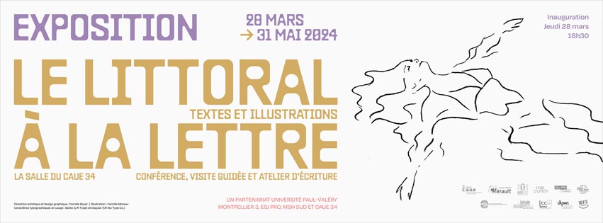 À l’occasion de l’exposition “Le littoral à la lettre” présentée à Montpellier au CAUE de l’Hérault, du jeudi 28 mars au vendredi 31 mai 2024, en partenariat avec l’Université Paul Valéry Montpellier 3, l’ESJ PRO et la Maison des Sciences de l’Homme SUD, nous proposons aux classes d’élèves du cycle 3 jusqu’au cycle supérieur des visites commentées de l’exposition.