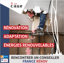 Les conseillers France Rénov du CAUE répondent aux questions des particuliers porteurs d’un projet de rénovation de leur logement (rénovation énergétique et adaptation du logement), d'installation d'énergie renouvelable, de construction ou tout simplement d’économie d’énergies au quotidien. Cette information se fait par téléphone du lundi am au vendredi midi mais aussi, sur rendez-vous, dans les permanences délocalisées sur le département