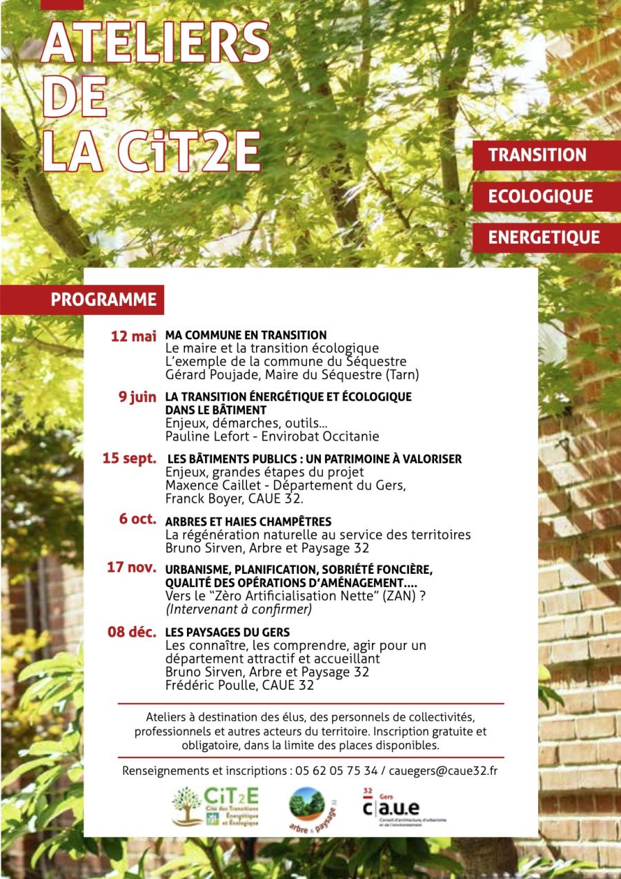 Co-construits et co-animés avec Arbre et Paysage 32, les Ateliers du Jeudi ont été rebaptisés "Ateliers de la CIT2E". Ils seront majoritairement orientés sur les questions de la Transition Écologique et Énergétique.