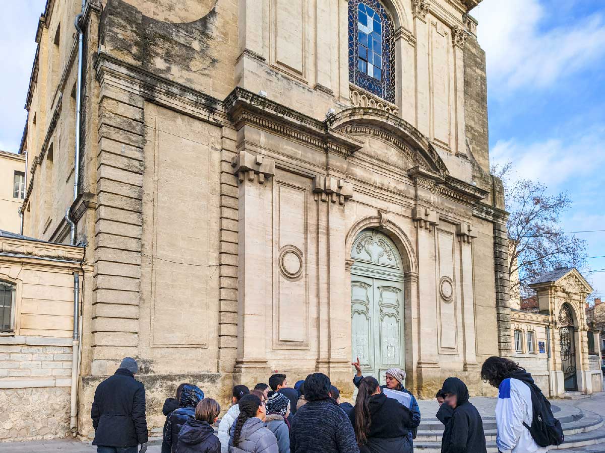 L’occasion de se pencher sur plus de 800 ans d’histoire de la médecine à Montpellier ! Menées entre les mois de novembre et de janvier, ces balades ont permis aux élèves d’explorer des bâtiments et des espaces publics de différentes époques et de styles architecturaux variés, dont les fonctions, liées à la médecine à un moment de leur existence, ont évolué au fil du temps. La ville apparaît alors comme un palimpseste, se transformant et se reconstruisant sur elle-même, tout en conservant les marques de son histoire.