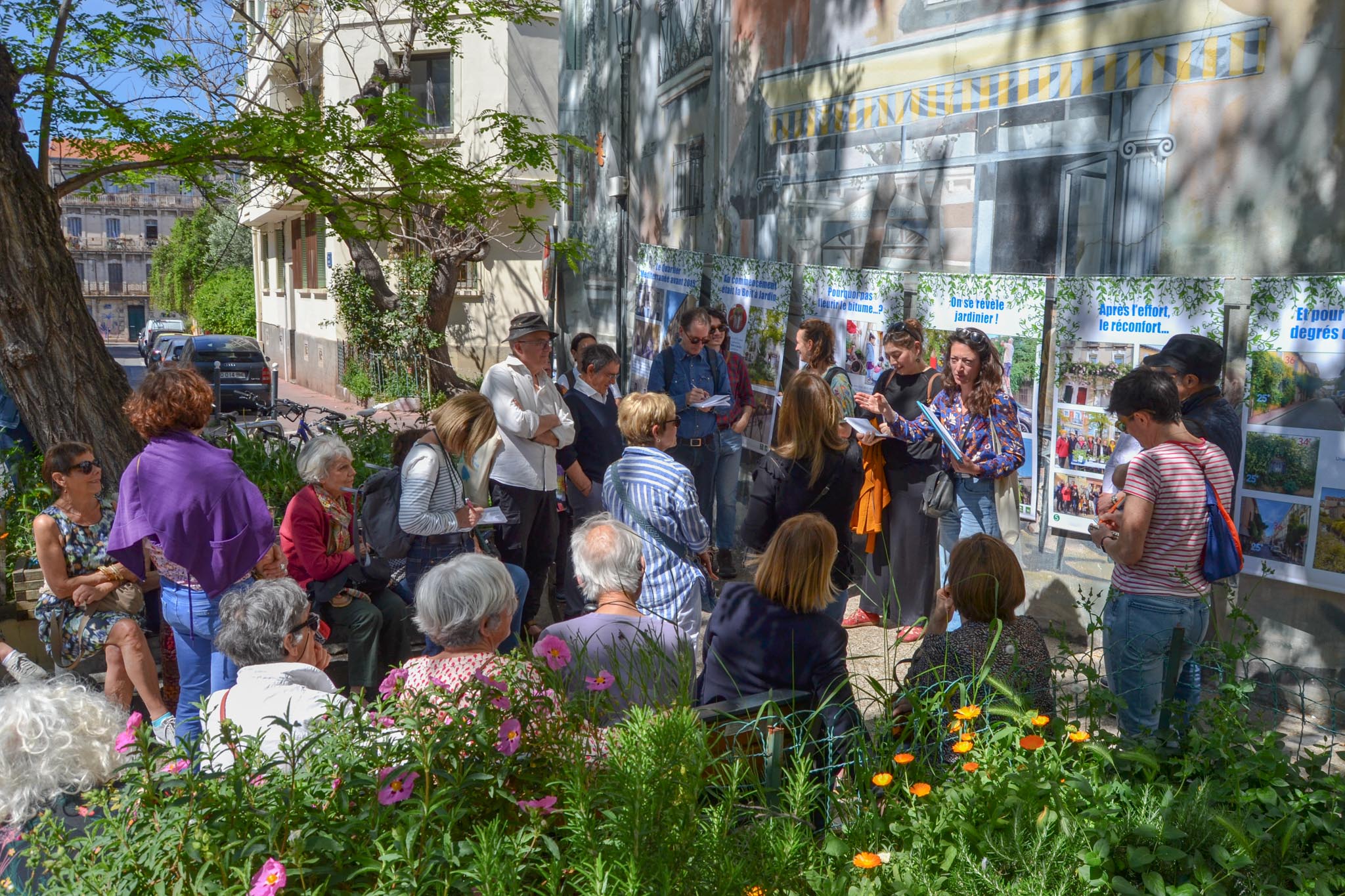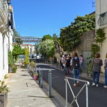 Dans le cadre de l’exposition “Quand la rue prend racine”, présentée au CAUE de l’Hérault du 16 avril au 19 juin 2026, le CAUE 34 organisait le 17 avril une balade dans le quartier Faubourg Méditerranée. Cette déambulation était animée par l'association Mare Nostrum représentée par Christine Konopnicki et Frank Plana, accompagnée de Stéphanie Grosset, chargée de mission biodiversité au service Nature, Observation et Territoire de la Ville de Montpellier.