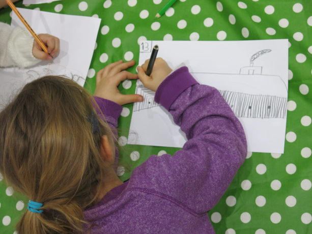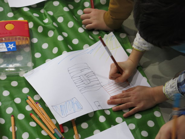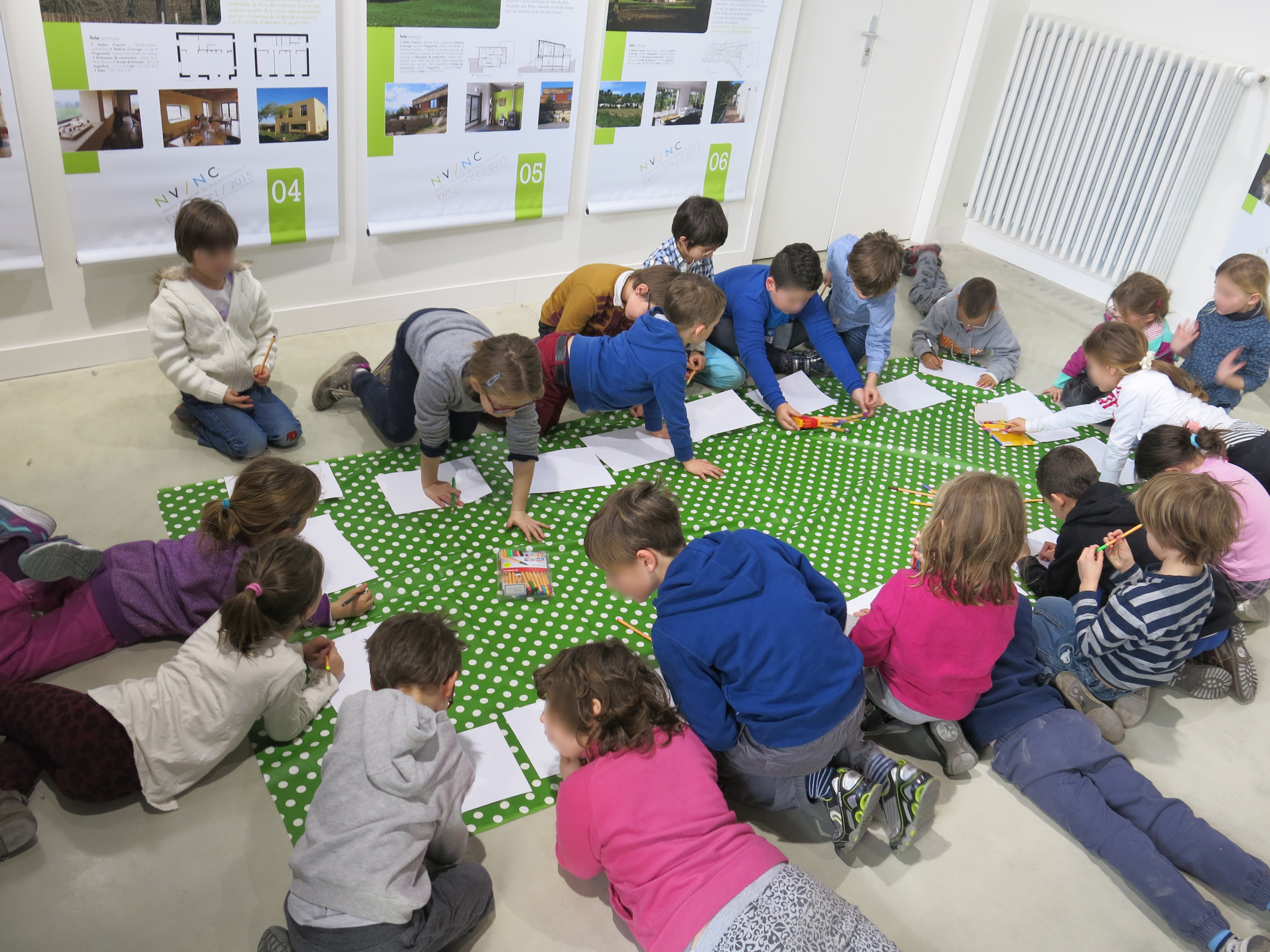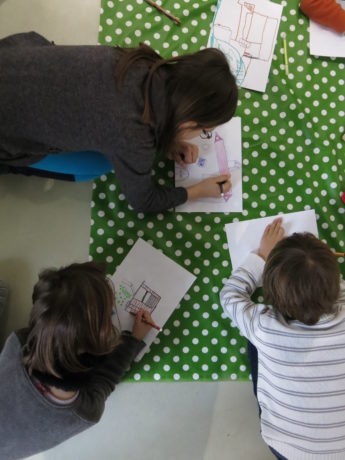 Les écoliers ont enfin pu retrouver certaines maisons présentées dans l’exposition, grâce à un jeu de devinette. Nous avons cloturé cette séance de sensibilisation par un atelier dessin « Dessine la maison que tu préfères et donne lui un nom » !