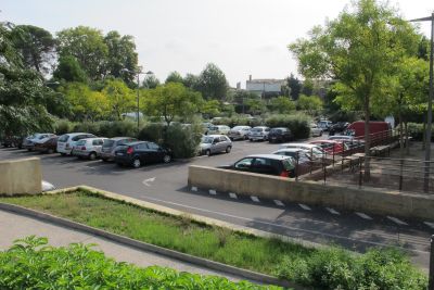Pézenas, qui bénéficie d’un secteur sauvegardé et d’une forte notoriété, accueille plus de 600 000 visiteurs en période estivale. La ville doit réorganiser son fonctionnement urbain pour répondre à un engorgement du centre par les véhicules, faire face aux inondations régulières dues aux crues des rivières le traversant et marquer qualitativement les entrées. C’est pour trouver des solutions globales qu’une étude urbaine a été lancée en 2003. Depuis, plusieurs chantiers ont été engagés : la création de parkings de proximité, un nouveau plan de circulation, la requalification des entrées de la ville et l’aménagement d’espaces publics. Le parc de stationnement Voltaire est l’un des points clés de ce renouveau urbain. A deux pas du centre, un vaste terrain très bien localisé était sous-utilisé en raison d’un accès difficile et d’inondations périodiques. L’espace, entièrement redessiné, ménage les circulations sécurisées pour les véhicules, les piétons et les personnes à mobilité réduite. De grands arbres : févier d’Amérique, lilas de Perse et Amélanchiers, alternent avec des haies en mélange pour structurer l’espace. L’eau de pluie est dirigée vers un réseau de noues paysagées puis stockée sous les chaussées. En période d’affluence, une navette relie le parking au centre-ville distant de 360 m.