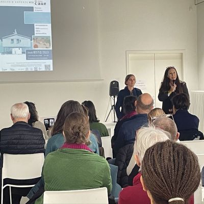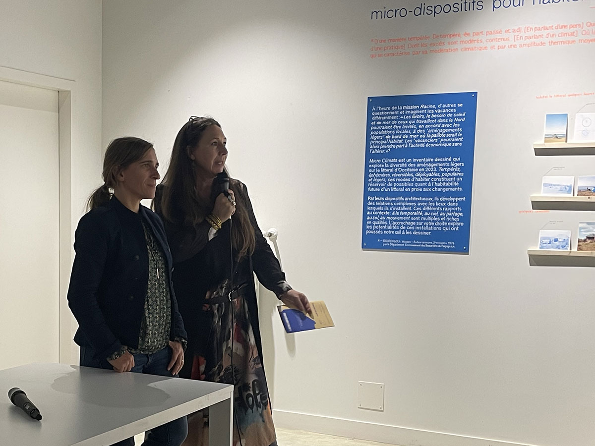 En introduction, Florence FOMBONNE-ROUVIER, urbaniste & directrice du CAUE 34, et Stéphanie BOST, MSH SUD (en photo).