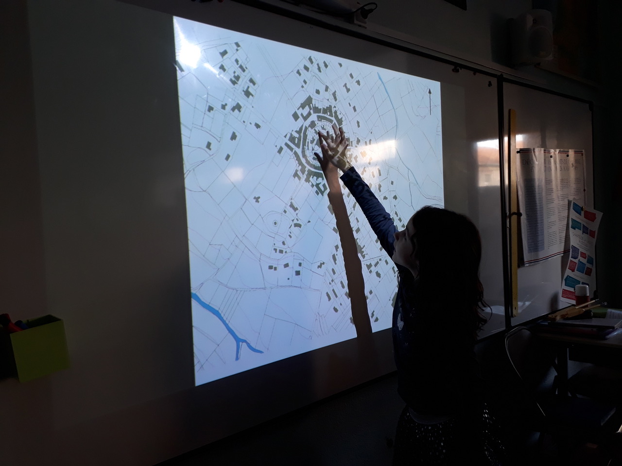 Lecture de documents représentant le territoire communal : photo aérienne, carte IGN, plan cadastral… Repérages, rencontre avec Isabelle Arnold et visites du chantier, constituent la trame de cette approche.