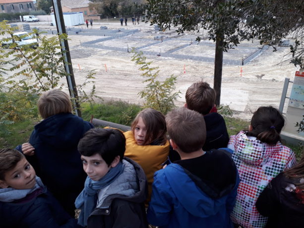 Les élèves passent régulièrement devant le chantier quand ils vont au terrain de sport, et peuvent ainsi en voir l’évolution.