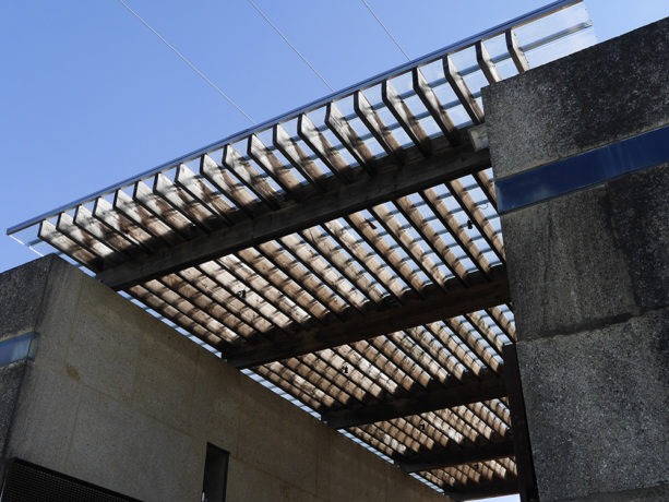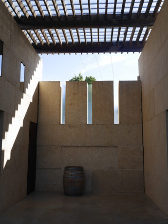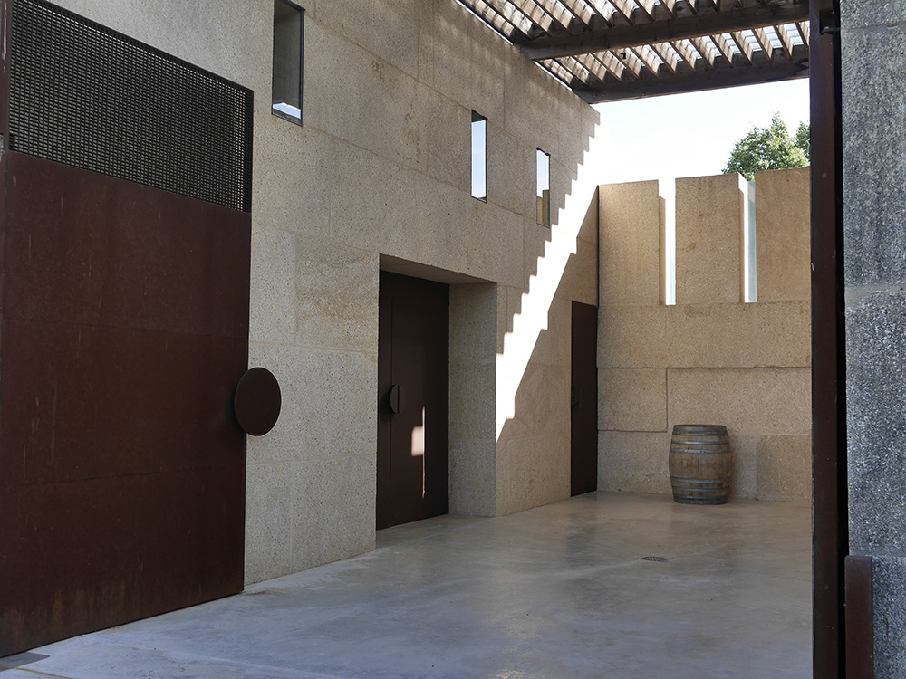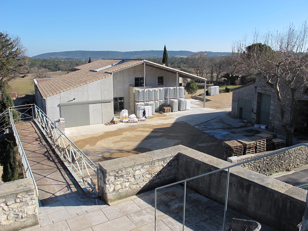 L’architecte et le vigneron choisissent des matériaux plus contemporains qui fonctionnent avec l’ancien : du béton brut combiné avec des pierres par exemple. Ils ouvrent la salle de réception et dégustation sur une grande terrasse, et au-delà sur le paysage, végétalisent la toiture-terrasse, aménagent réception, bureaux, construisent la cave abritant des cuves en béton, inox et en bois. Les travaux s’achèvent en 2013.