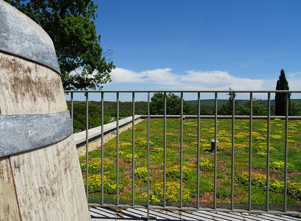 Tout le bâtiment est construit sur des principes de géo-écologie et les vins sont garantis sans pesticides, certifiés par le laboratoire Excell.