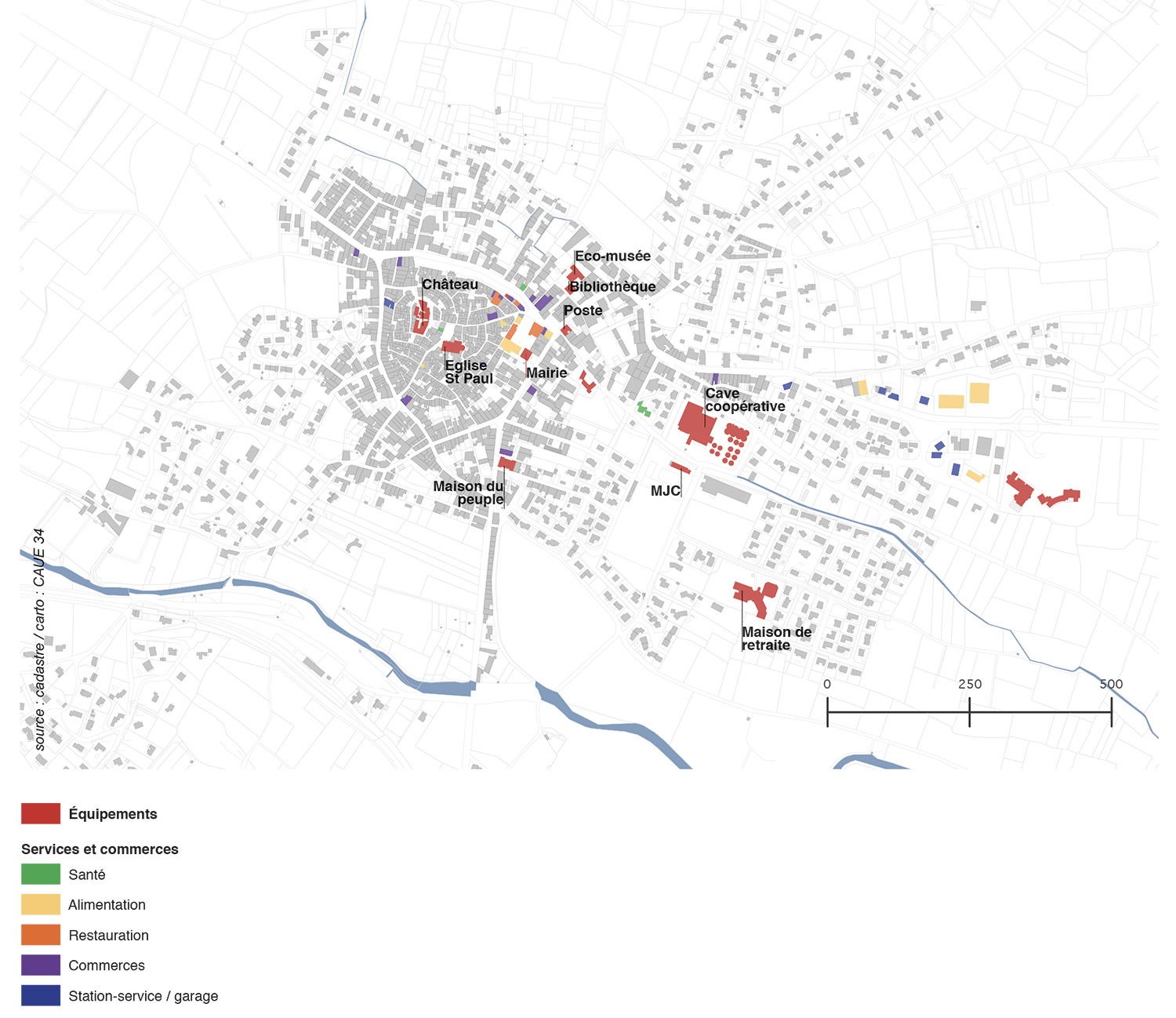 Sollicité par la commune, le CAUE 34 a d’abord animé des échanges entre élus et partenaires concernés – CD 34, EPFLR, CC SudHérault, Pays Haut Languedoc et Vignobles – pour identifier les incidences des extensions urbaines et du futur contournement routier sur le centre du village, pointer les enjeux de renouvellement urbain…