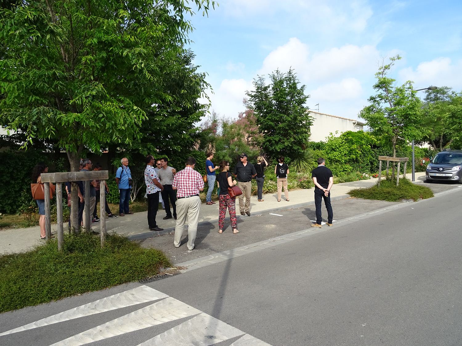 Les participants ont été accueillis, avenue des Aresquiers, par Jean-Jacques Roulleaux, adjoint au maire en charge de l’Urbanisme et des Grands travaux à Vic-La Gardiole. Ensuite, Sylvaine Glaizol et Xavier Mestre, architectes et urbanistes conseillers au CAUE de l’Hérault, ont exposé les enjeux et la démarche. Enfin, Hervé Piquard, architecte et urbaniste – Atelier SITES – a présenté les projets et commenté la visite des réalisations.