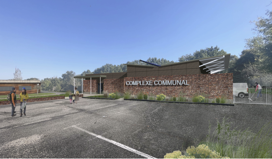 4 entités distinctes : salle polyvalente, local chasseurs (espace convivialité et découpe), services techniques et rangements associatif. Une écriture architecturale commune permet d’unifier ces entités aux besoins, usages et temporalités différents.